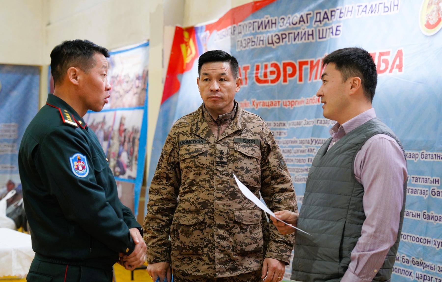 Уг хуралд цэрэг татлагын товчооны нийт бие бүрэлдэхүүн, хорооны Засаг дарга нар, эрүүл мэндийн төвийн эмч, мэргэжилтнүүд Цагдаагийн газар, Замын цагдаагийн хэлтсийн алба хаагчид болон ажил хариуцсан мэргэжилтнүүд оролцов. Хурлын эхэнд Засаг даргын Тамгын газрын даргын тушаалыг танилцуулж, цэрэг татах үйл ажиллагааг холбогдох хууль, тогтоомжийн дагуу зохион байгуулах, нийгмийн хэв журмыг сахиулах, аливаа зөрчлөөс урьдчилан сэргийлэх, цэргийн албанд татагдсан иргэдийн эрүүл мэндийн үзлэг шинжилгээнд онцгой анхаарах, ар гэрт нь мэдээллийг тодорхой өгөх, үйл ажиллагаатай холбоотой дүн мэдээг тогтоосон хугацаанд нийслэлийн Цэрэг татлагын товчоонд хүргүүлж ажиллахыг даалгасан юм.