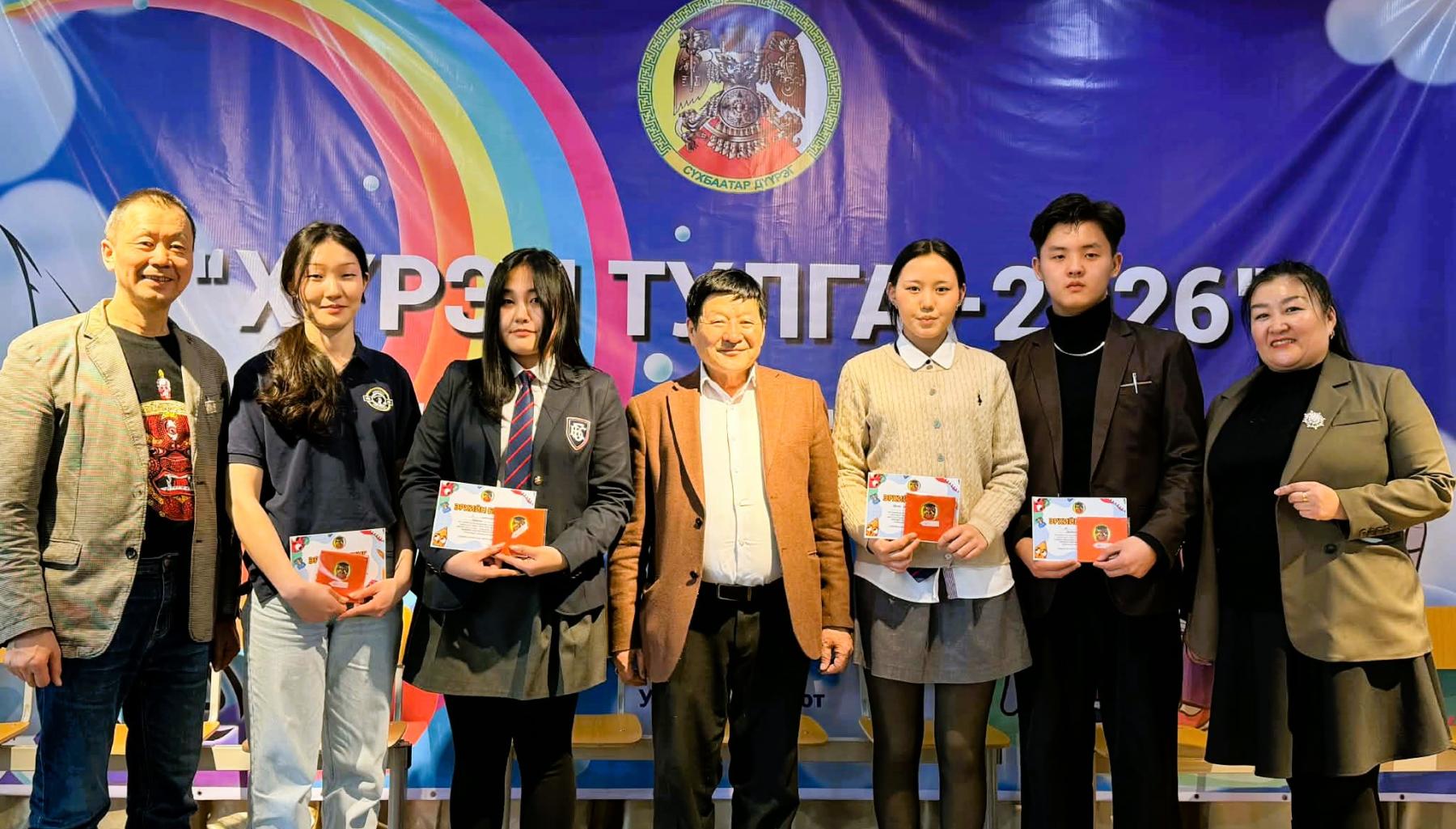 “Хүрэл тулга-2026” уралдааны нас тус бүрт эхний 8 хүүхдийг шалгаруулан Засаг даргын өргөмжлөл, Интер ном дэлгүүрээс сонирхсон номоо худалдан авах эрхийн бичгээр шагнасан юм. Мөн насны ангилал тус бүртээ эхний байрт шалгарсан дараах хүүхдүүд нийслэлийн шатны шалгаруулалтад оролцох эрхтэй боллоо.