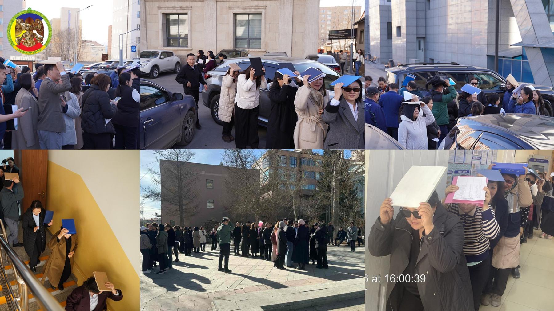 Дүүргийн Засаг даргын Тамгын газрын ажилтан, албан хаагчид 16:00 цагт орон даяар дуугарсан гамшгийн зарлан мэдээллийн дуут дохиогоор Онцгой байдлын хэлтсийн заавар, зөвлөмжийн дагуу дадлага, сургуульд бүрэн хамрагдлаа.